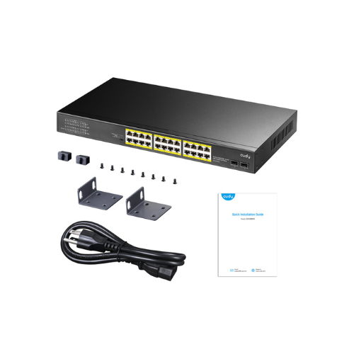 The GS1028PS2 is a rack-mounted 24-GbE, 2-SFP PoE switch designed for high-performance networking. It features 24 Gigabit Ethernet ports compliant with the 802.3at/af PoE standards, allowing for efficient power delivery to connected devices.