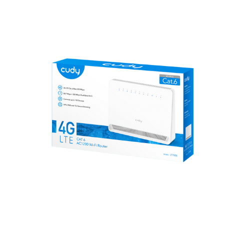 The 4G Cat 6 AC1200 Wi-Fi Router (LT700E 1.0) is a versatile and high-performance router designed for a variety of applications, including home, office, surveillance, exhibitions, and RV use. This router supports 4G LTE Advanced technology, offering download speeds of up to 300 Mbps through 2-carrier aggregation and MIMO capabilities, ensuring reliable connectivity even in challenging environments.